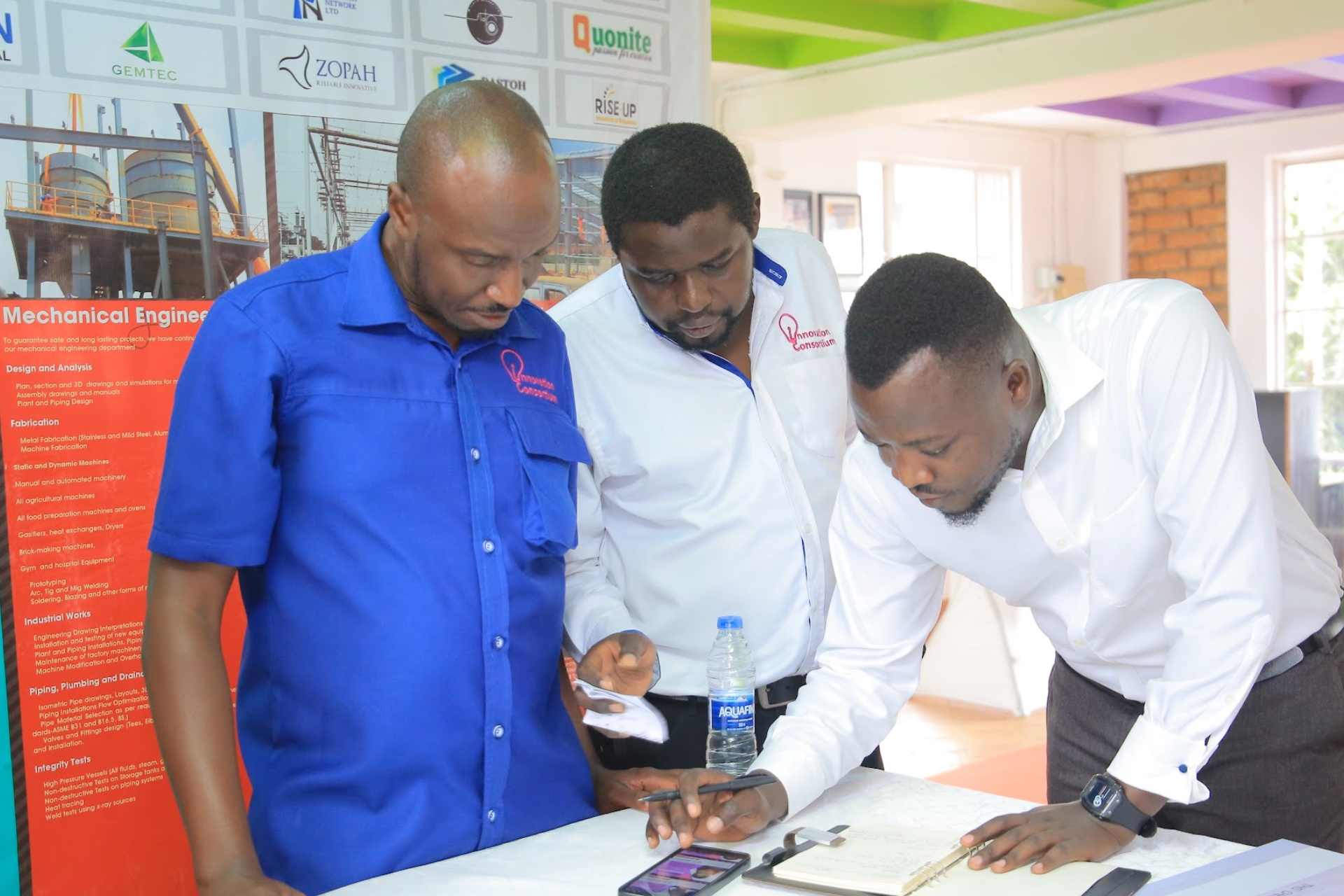By definition, Innovation Consortium is a hub where futuristic Innovation combines with tested Incubation and client-centered Implementation to produce efficient viable and sustainable solutions. And as such, we run the Innovation Space project which is an open free thinking program. Through this program, deserving ideas are diagnosed, baked and refined into practical inventions and solutions to everyday problems. This is done through monthly brainstorming sessions whose products are later taken to the workshop for fine-tuning and implementation.
